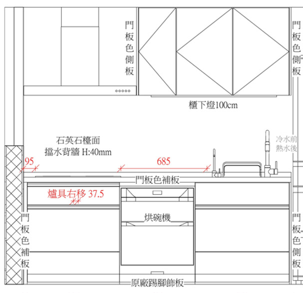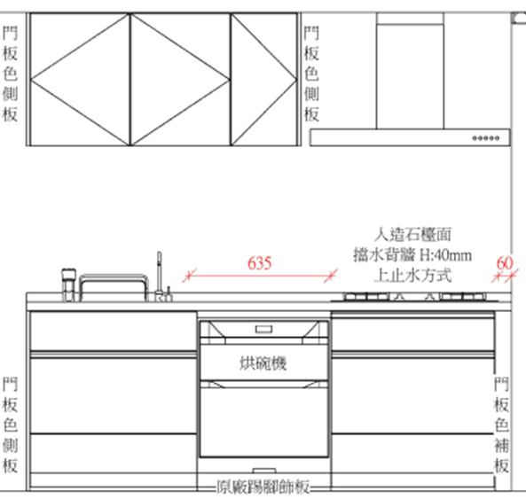 ◆ 尺寸樣式 : 餐具收納櫃+一字型後排櫃 342cm