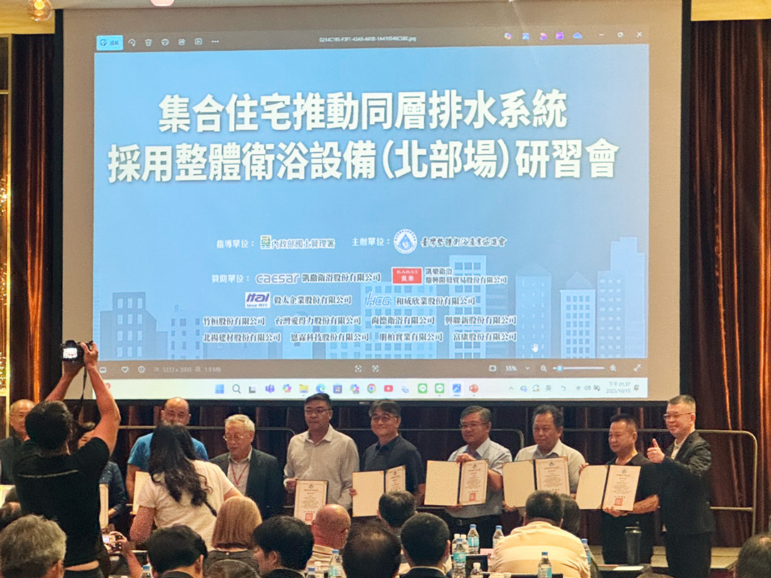 本公司於 2025 年 10 月 15 日,出席由【台灣整體浴室協進會】舉辦的「同層排水整體衛浴採用」研習會,與多位產業先進共同探討同層排水系統在現代住宅中的應用與發展潛力。