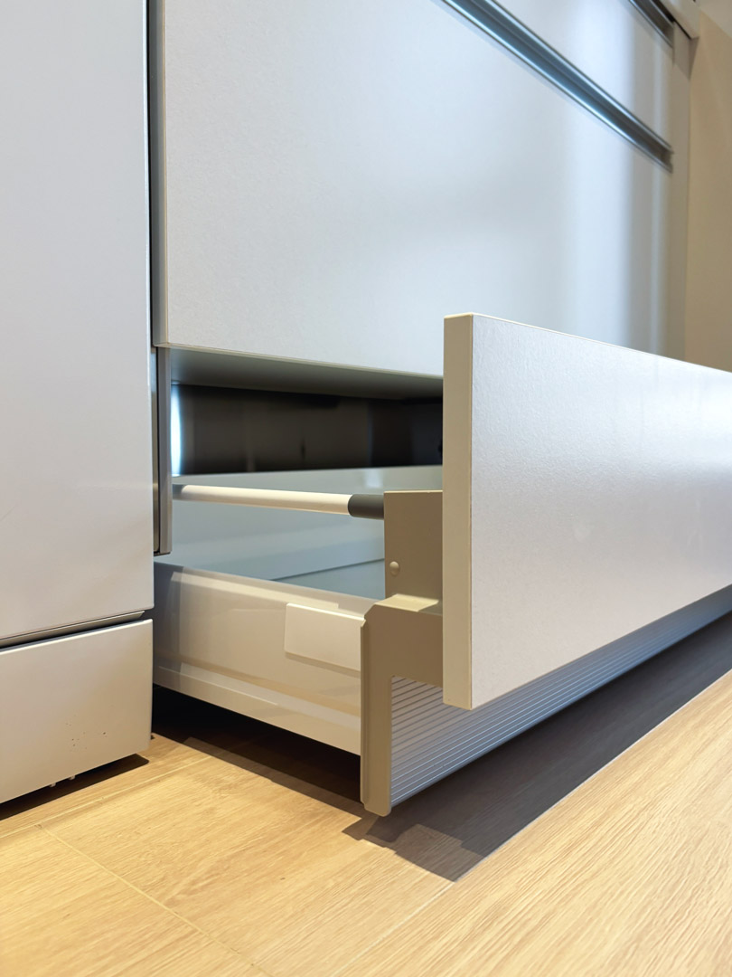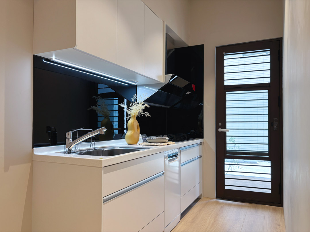 設計規劃: ►門板:Class5(CAT) ►龍頭:KVK KM5021TEC ►把手:隱藏式把手(B) ►水槽:美.寂靜水槽(SD) ►檯面:LG人造石設計人員:梁玄儒