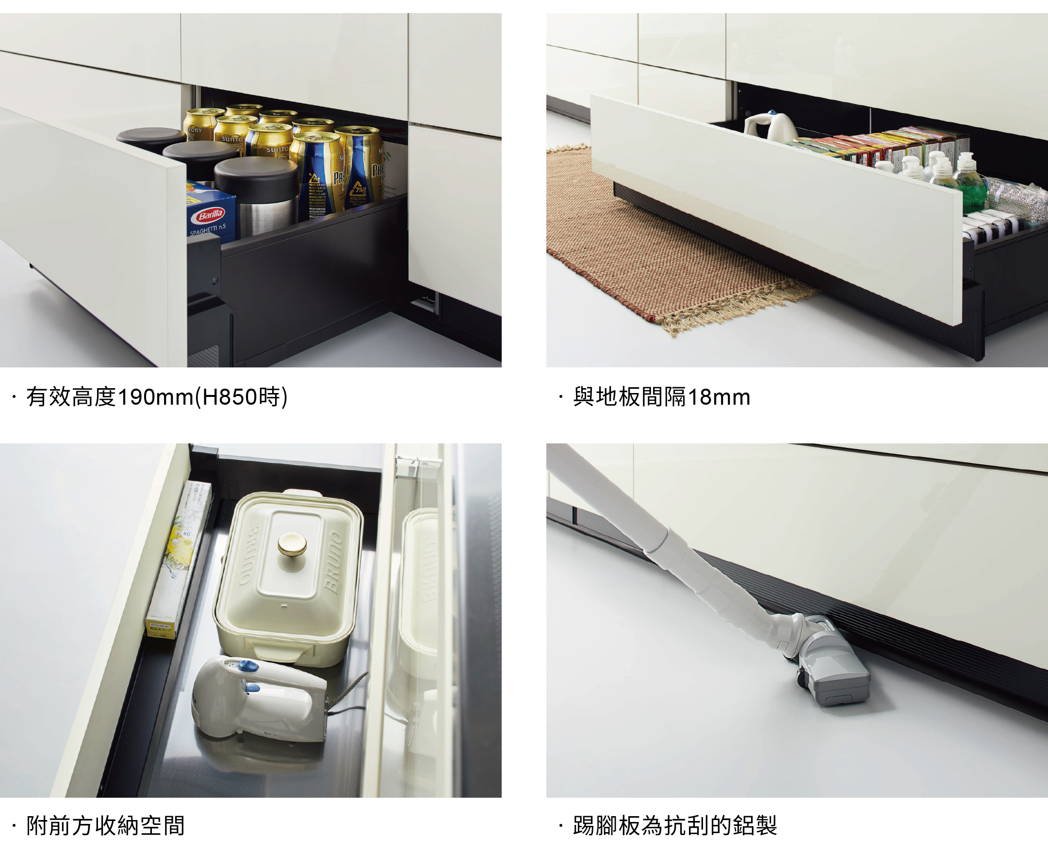 不鏽鋼櫃體,耐濕不易讓害蟲靠近,也不易殘留髒污,可常保清潔。